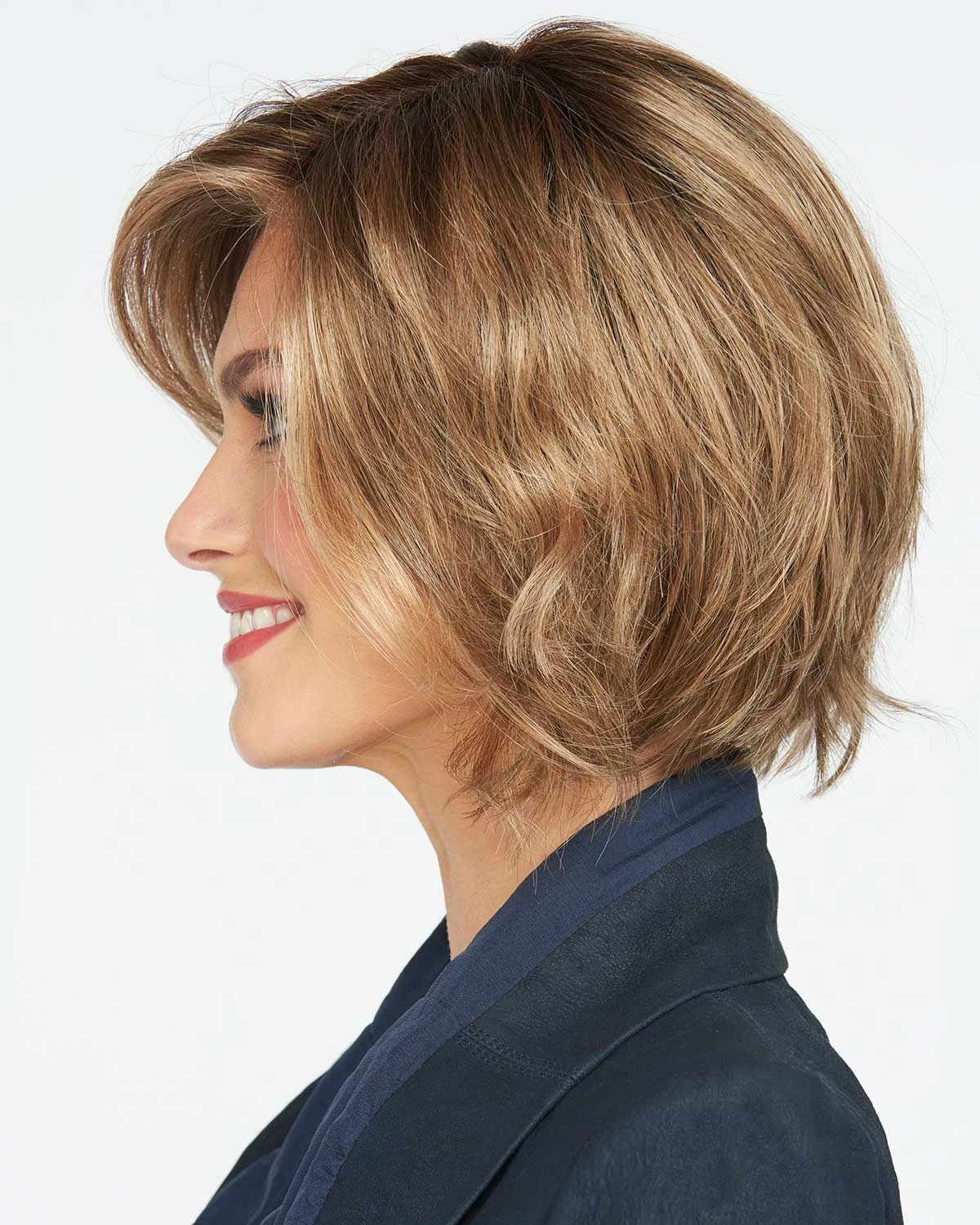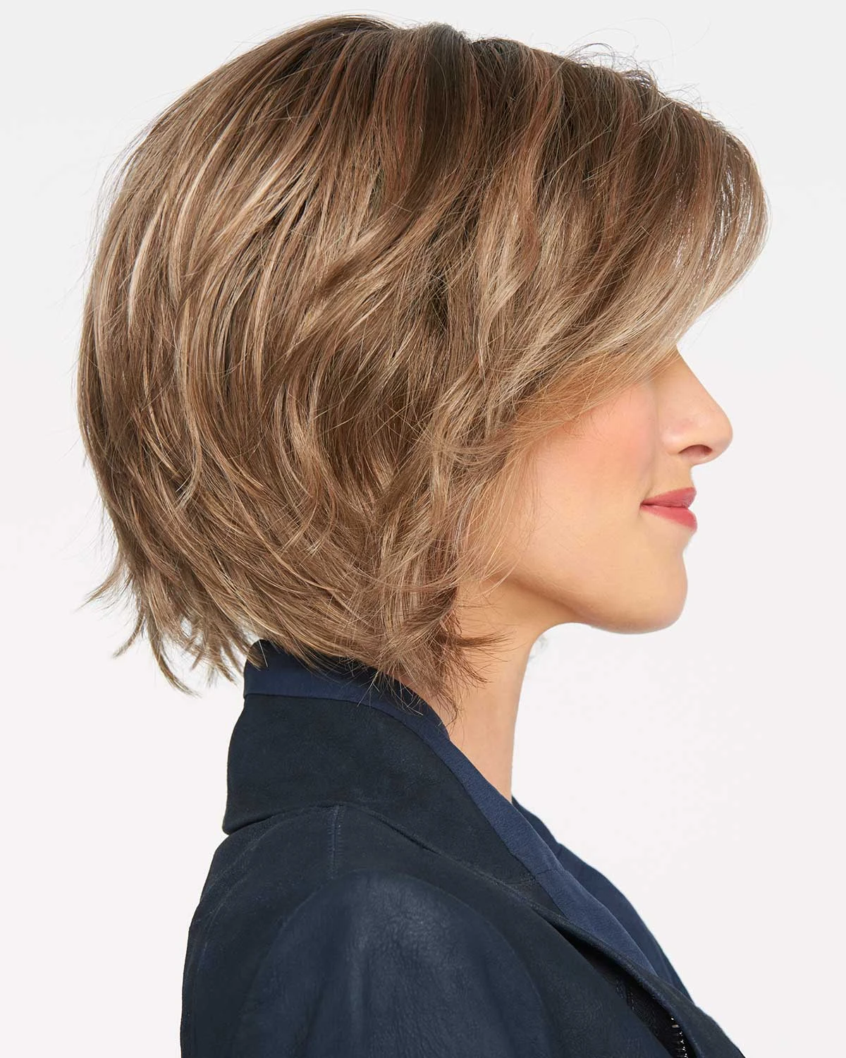 Look no further because this cut checks all the boxes. Sophisticated layers, bouncy body, and let’s not forget a perfect diagonal bang. With an extended lace front and mono side part, looking real is really easy. Simply brush the part, curve the ends under, and go. But look out! With Curves Ahead you’ll have lots of compliments in your path!