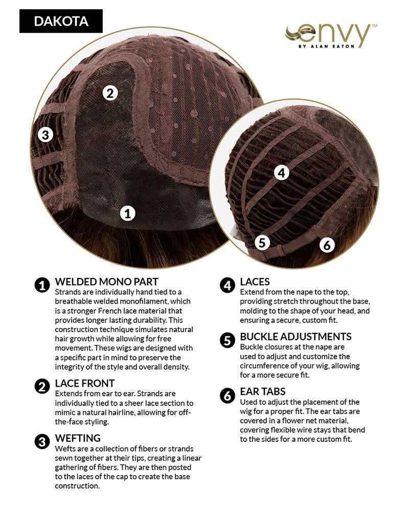 With her easy-going waves and long, feathered fringe, this shoulder-length bombshell is sure to turn heads. Even better, Dakota was designed with a Mono Part construction, ensuring the softest, most breathable fitperfect for women with sensitive scalps and those undergoing chemotherapy.