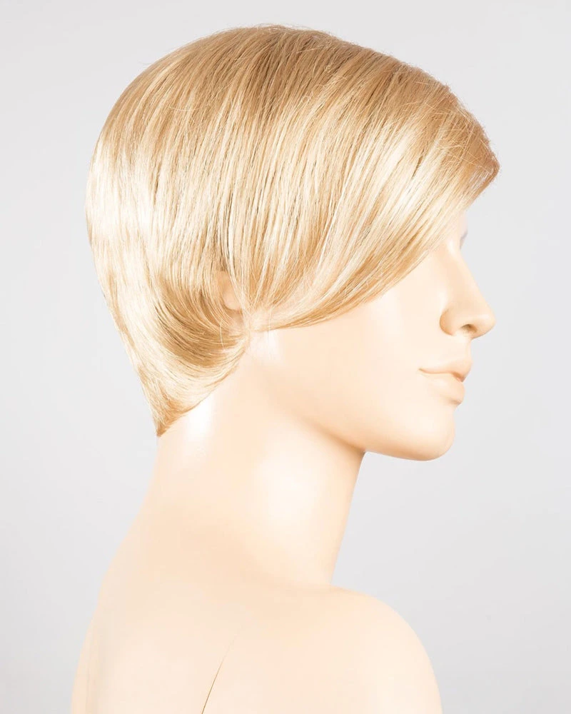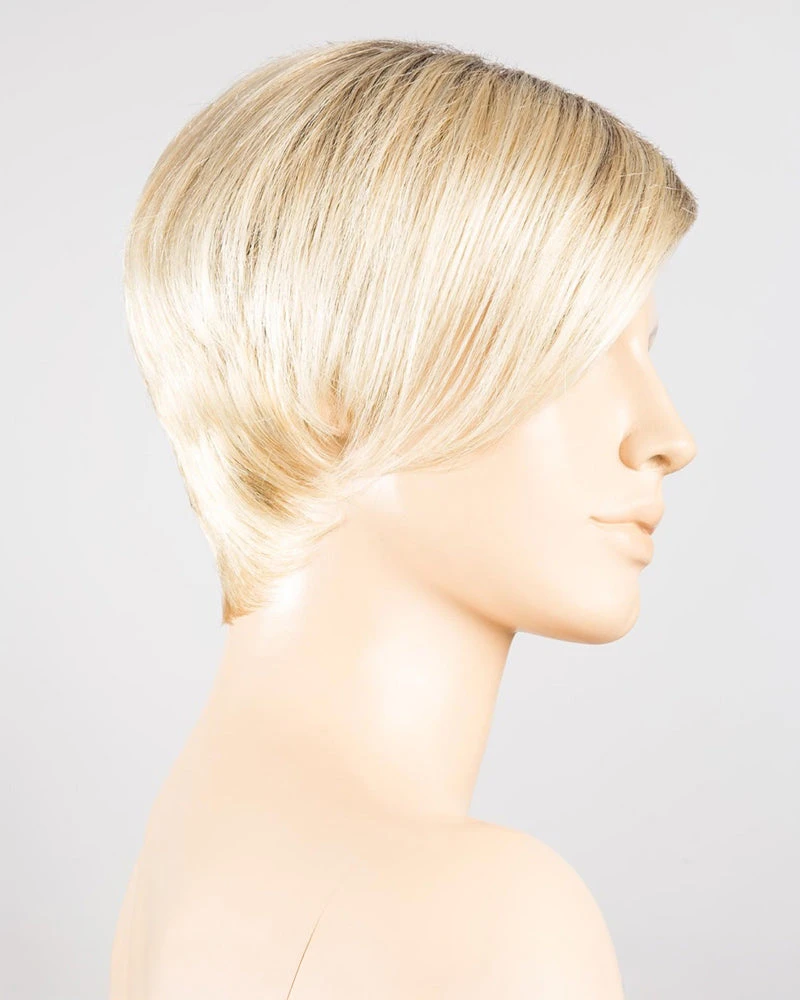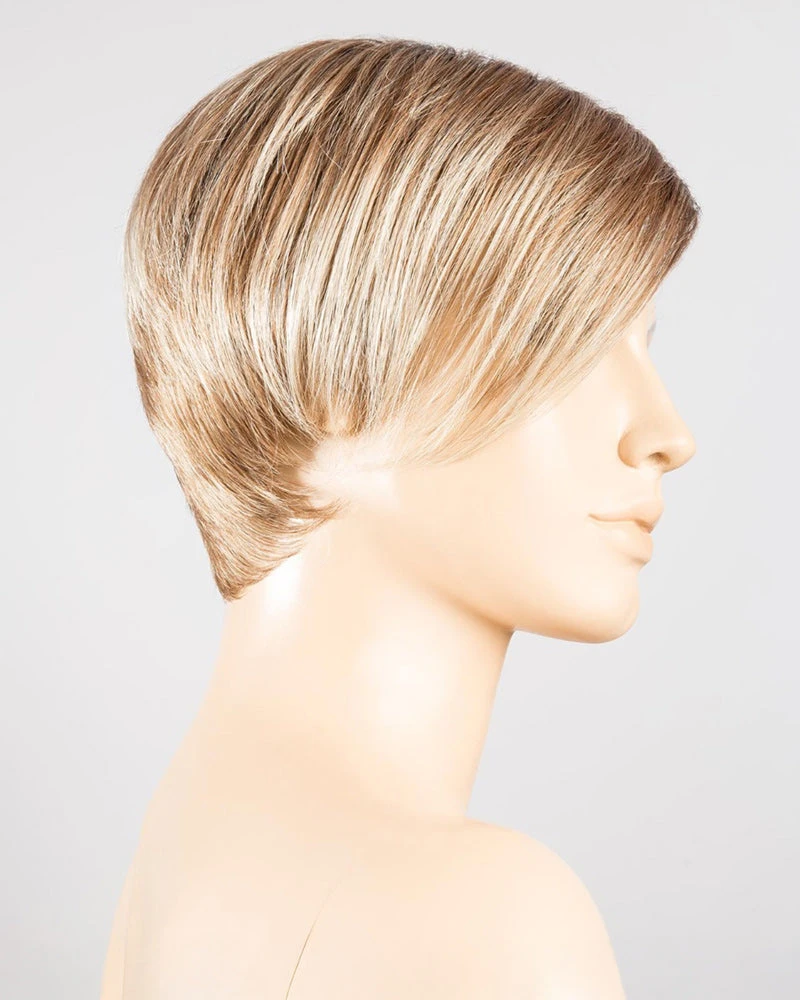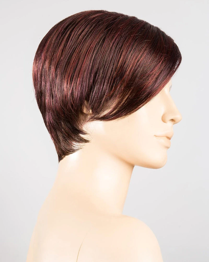 Disc by Ellen Wille is a short, asymmetrical boy cut with a soft, tapered neckline and angled fringe. This modern short wig features a monofilament left-side part, and is ideal for a petite to average head size. The density of the ready-to-wear synthetic hair looks more like natural hair and requires little to no customization or thinning.
