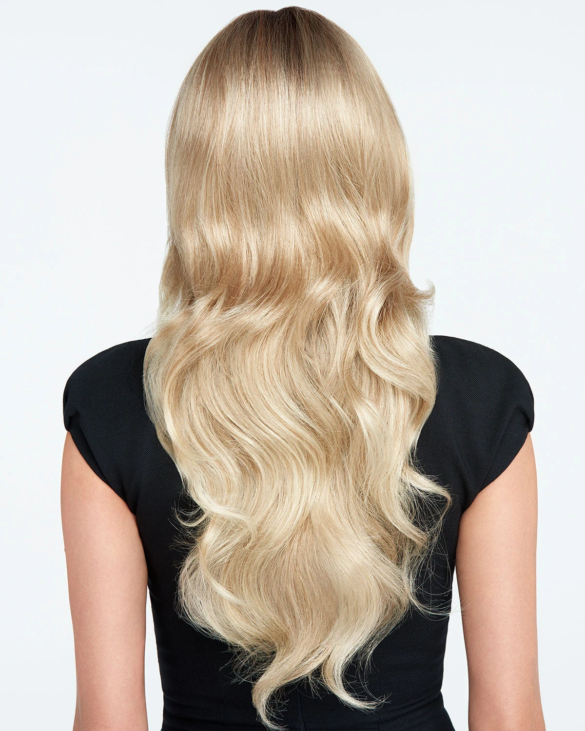 The Down Time Wig by Raquel Welch is exquisitely long and lush. This style is the epitome of classic length and wave. Our longest, hand-knotted wig to date, this trending look combines the natural looking hairline of a Sheer Indulgence lace front monofilament top for optional off-the-face styling with the cool, light comfort of a 100% hand-knotted base. The result is the ultimate in length and style without the time and effort it would take to style your own hair.