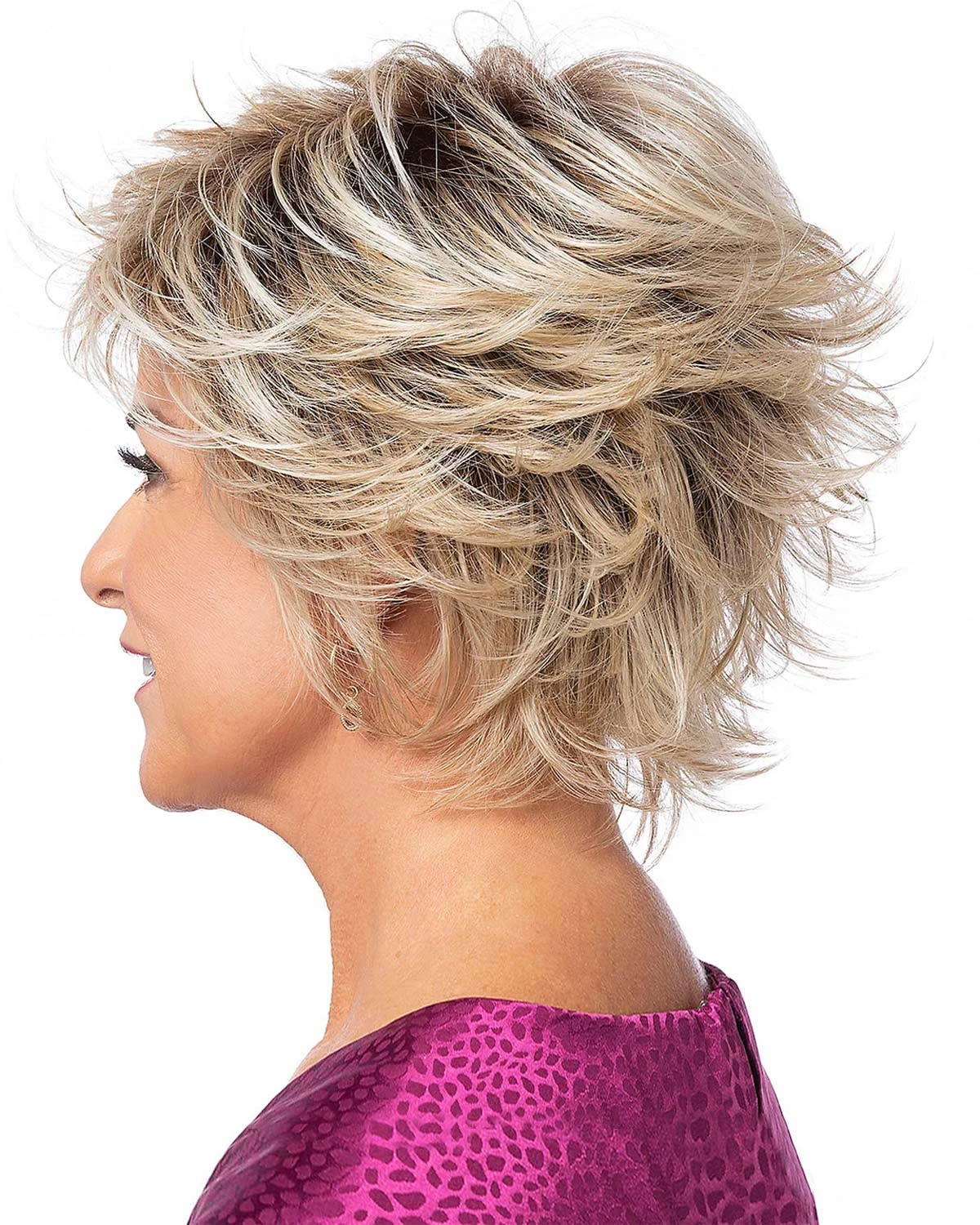 Full of flirty personality, the Fashion Flair Wig combines multi-layered, piecey texturing on the sides; spiky, razor-cut chunkiness in the back, and gentle, airy bangs. The softly waved style can be worn smooth, full, or somewhere in between. The specially designed cap can be easily adjusted for a custom, comfortable fit with the sizing tabs in the neckline.
