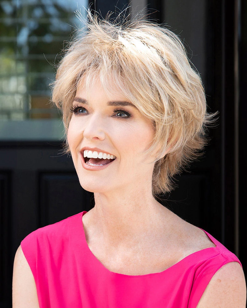 Sometimes a name just says it all. Flame’s artfully teased and tousled do is lively as fire and cool as ice. The capless construction allows you to bump up the volume or slick it down, depending on your mood, and the remarkable qualities of our Envy hair heat-friendly blend gives you endless styling options. When making an immediate impact is your mission, Flame belongs to you.