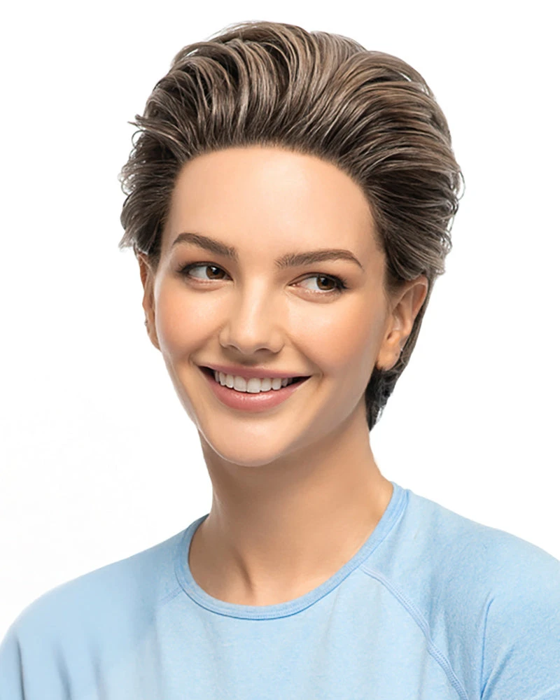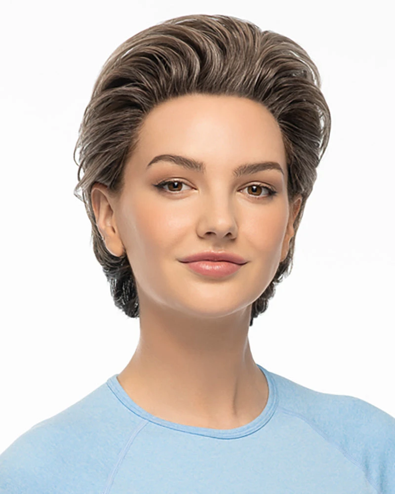 Light & Airy is expertly crafted with the worlds lightest wig fiber, Look Fabulous Realistic, delivering an unparalleled replication of the natural movement, luxurious look, and feel of fine human hair. Its directional, hand-knotted ear-to-ear lace front and strand-by-strand hand-knotted top create an undetectable hairline and seamless parting, offering a level of natural flow. With carefree low-density body waves that can be styled straight or left wavy, this piece is designed to impress. The back tapers at the nape for a meticulously refined silhouette that exudes elegance and sophistication.