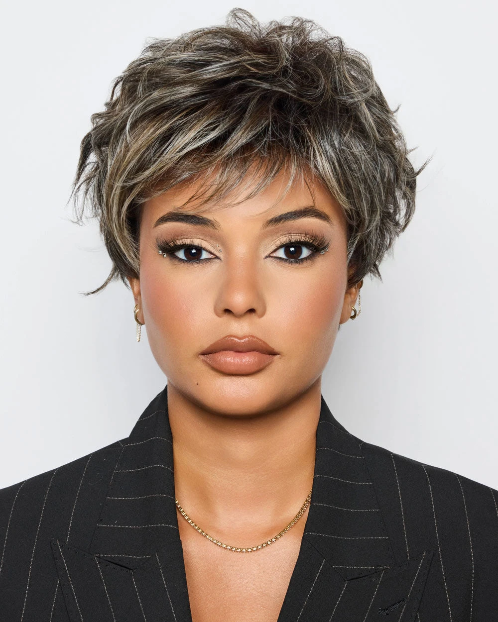Luca from Rene of Paris Hi-Fashion Collection is a short-length synthetic wig. This modern tousled pixie style embraces all face shapes. The wispy fringe can be styled to the side. Luca is machine-made with adjustable tabs in the back nape area to allow a more comfortable fit. The result is a comfortable fit with a natural look that is both fashionable and easy to wear.