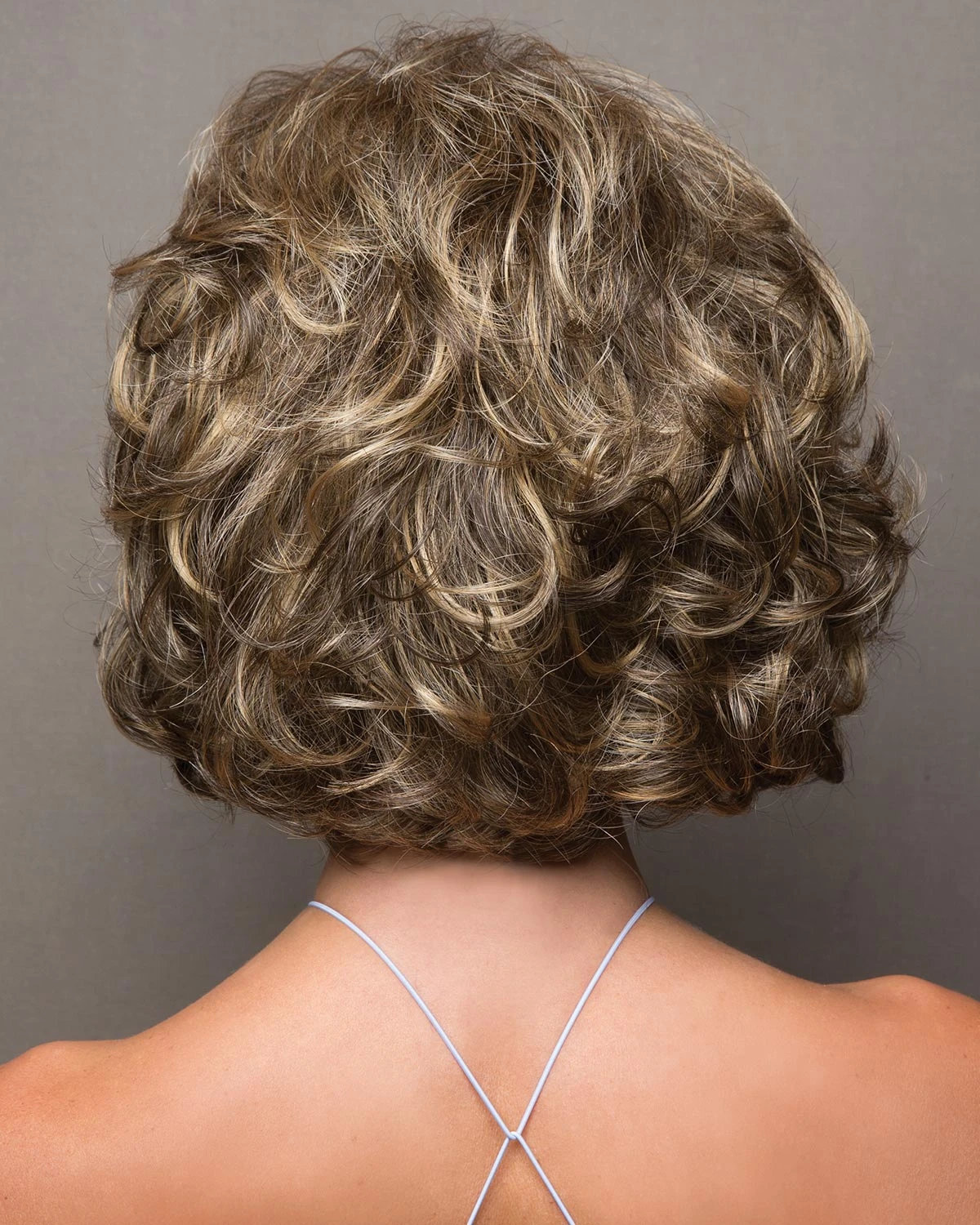 Chin length bob with soft tousled curls.