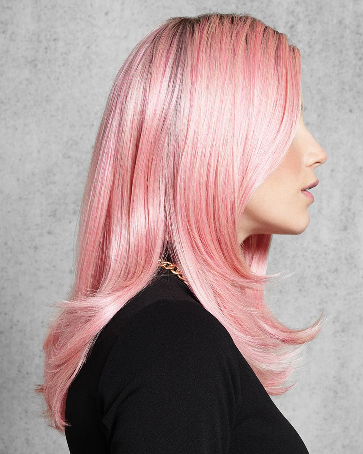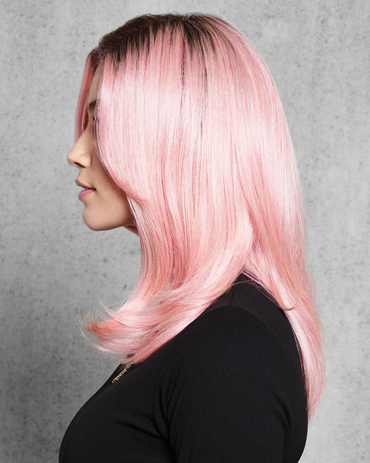 We can’t promise you won’t stand out with this pop of pink. These classic layers are anything but ordinary. The dark root adds contrast and makes it look like you spent hours in the salon chair. The Tru2Life Heat-friendly synthetic fiber can be styled curly or even completely straight. With a comfortable cap design you can wear it for a night out or even all day. Pinky Promise will have you lying about who did your hair color.