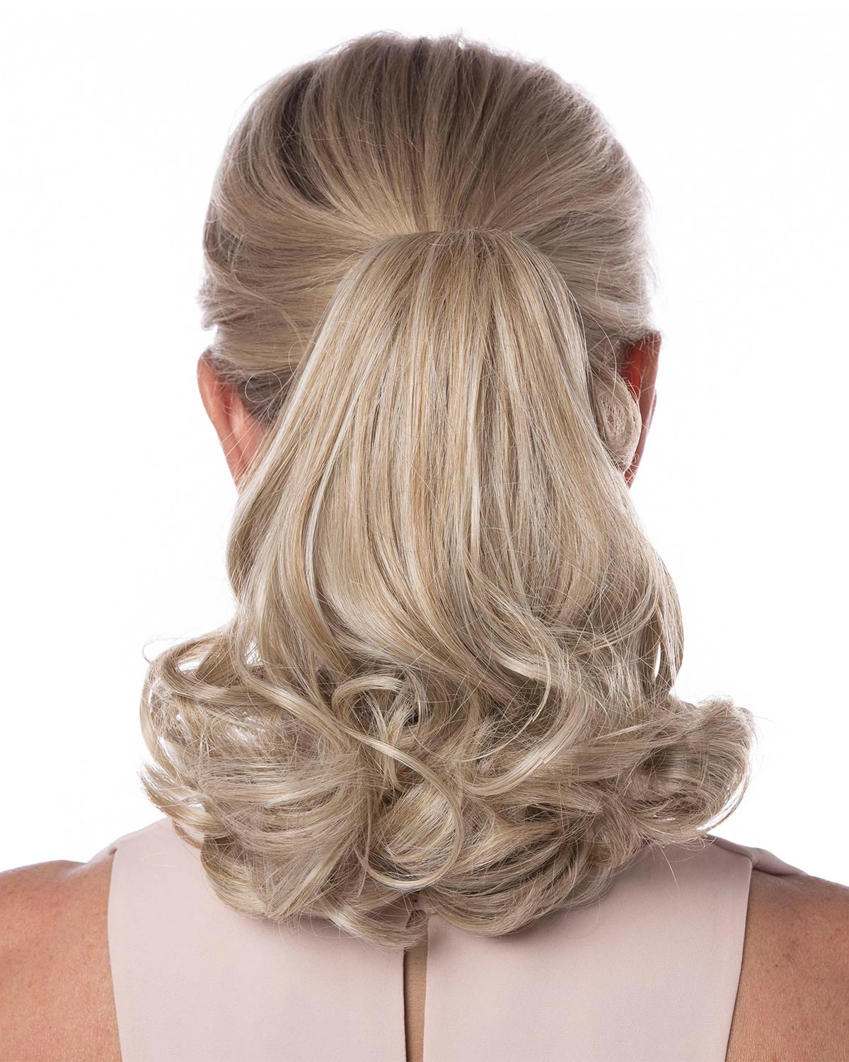 Pony Double Play HF by Tony Brattin is a clip-on (4″ Claw Clip) full ponytail that instantly adds volume, length and bounce… and reversible for extended length and limitless styling options. Wear it high or low for a completely different hairstyle.