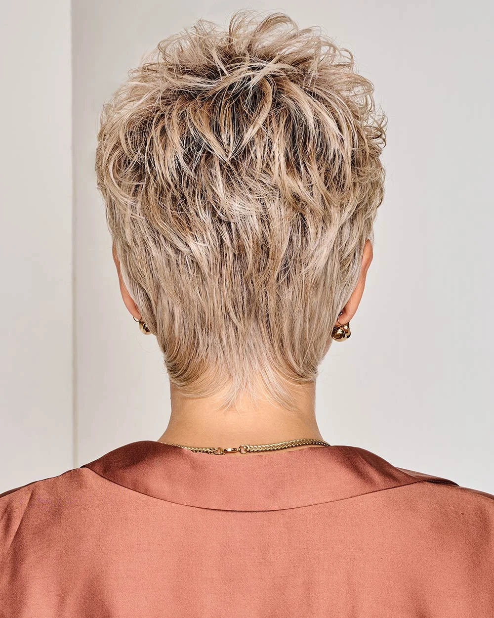 Cropped down has never looked so dressed up. This tightly shorn boy cut is so easy to style with a shattered, piecey texture or as a sleek pixie. Your new favorite, all-season short style. Cool in warm weather, perfect with scarves when the temperature drops.