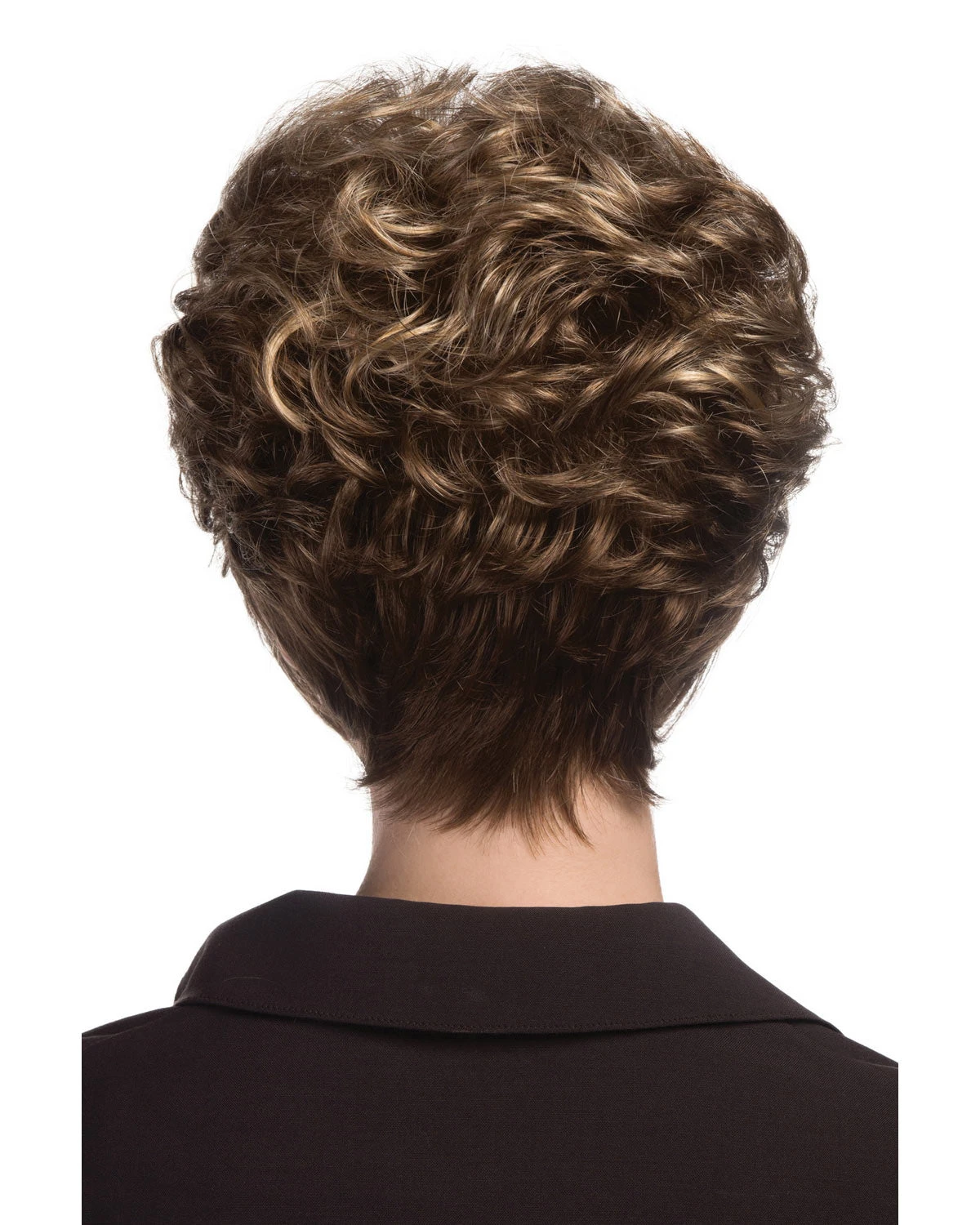 Short pixie with loose curls, wispy long sides & tapered nape.